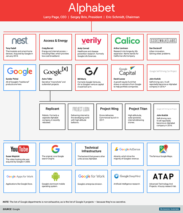 兩年前,Google 進(jìn)行了重大的業(yè)務(wù)架構(gòu)調(diào)整,成立了 Alphabet 來培養(yǎng)除了 Google 意外的新業(yè)務(wù),但是從技術(shù)上來說這些公司依舊是 Google 的子公司,而現(xiàn)在這些業(yè)務(wù)將成為 Alphabet 旗下的子公司,和 Google 一樣在法律上成為平級(jí)。